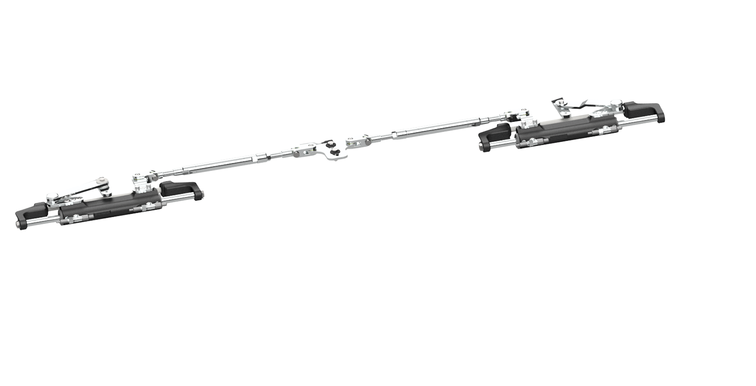 Heavy duty triple engine/twin cylinder tie bar kit for use with UC128-OBF or UC130-SVS and UC128P-OBF or UC130P-SVS “Port” version outboard cylinders. Suitable for use with SilverSteer these AISI 304 electropolished and passivated stainless steel tie bars are simple to install and allow for independent trimming of engines with minimal effect on engine alignment.