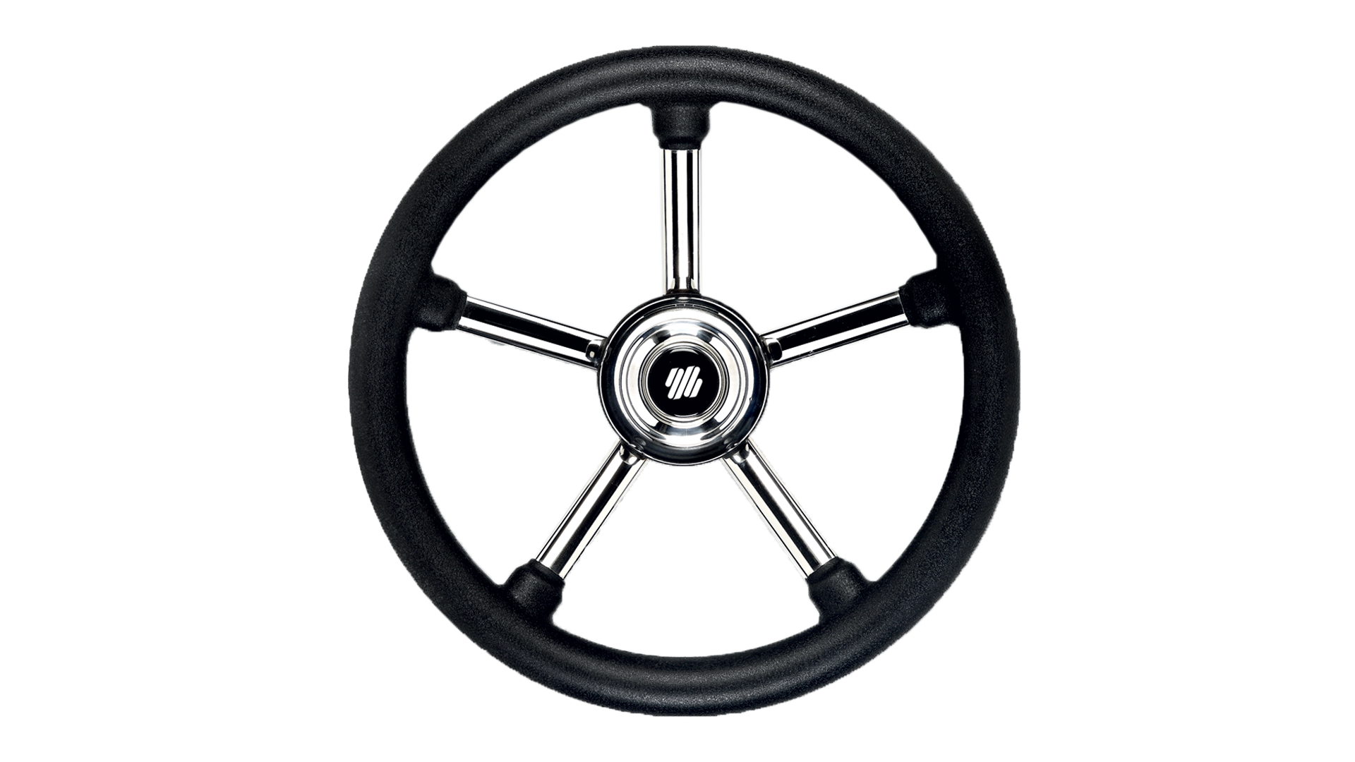 5-Spoke non magnetic Stainless Steel Boat Steering Wheel, with Polyurethane grip.